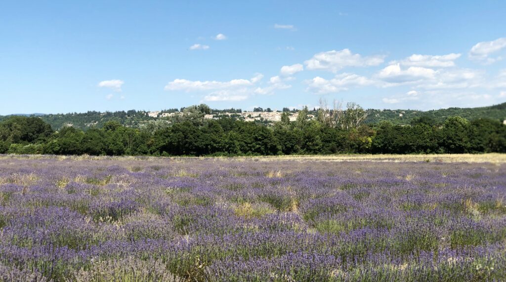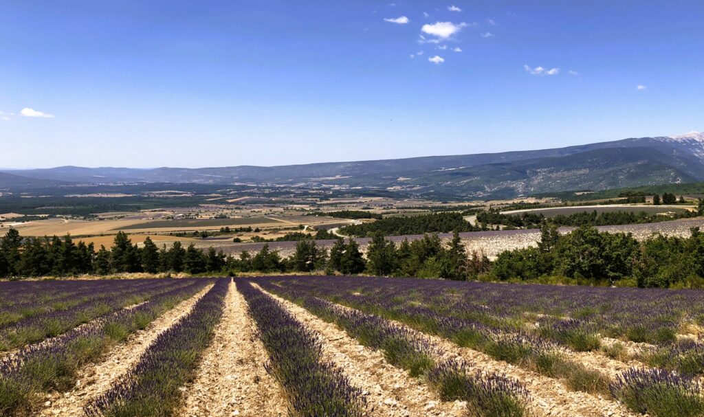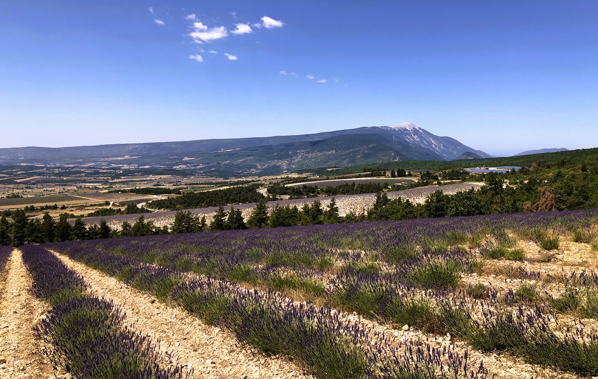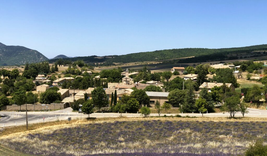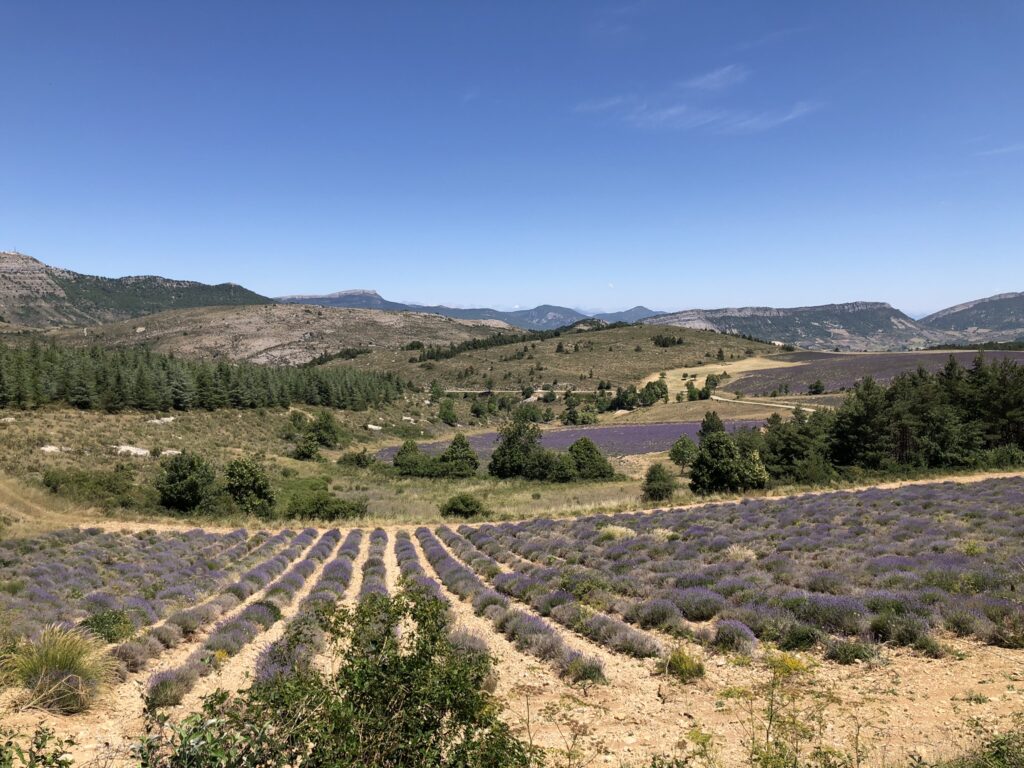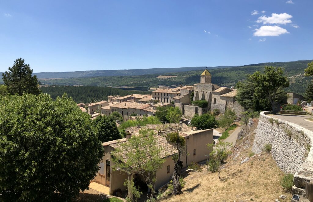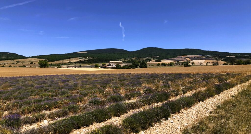 Wat is het hier ontspannend, geen gejaag en alles op het gemak. Vandaag reden we Col de l’Homme Mort op via de Nesque, Sault, Ferrassières. In het begin ging het fietsen heel vlot maar bij de beklimming van de “Col de l’Homme Mort” kreeg snoek het moeilijk. Moe en beetje oververhit. We reden nog even verder tot we uitzicht hadden op “Barret-du-Lioure” en zagen de Alpen in de verte! We fietsten terug via dezelfde weg en stopten even in Ferrassières. Niet ver van het kerkje is er een fontein en een bank om even te rusten. Tijdens het dalen had JM terug een bij steek gehad. Ik kon het gif uitzuigen. We daalden verder naar Aurel en van Aurel reden we naar Sault om te eten want na 65 km en klimmen hadden we honger. Mooie dag. Het wordt hier komende dagen heel erg warm, tot 38 graden.